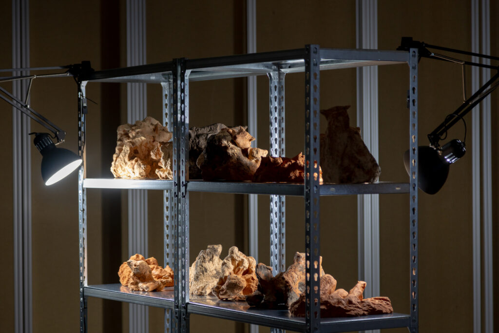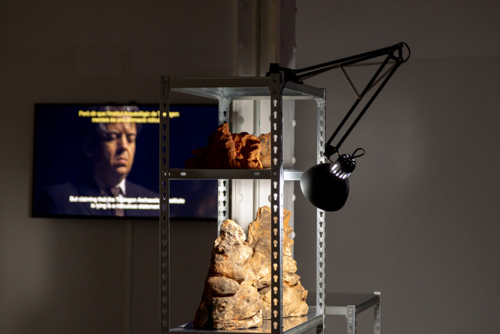 The story is told through an installation that includes reproductions of these artworks and a film.